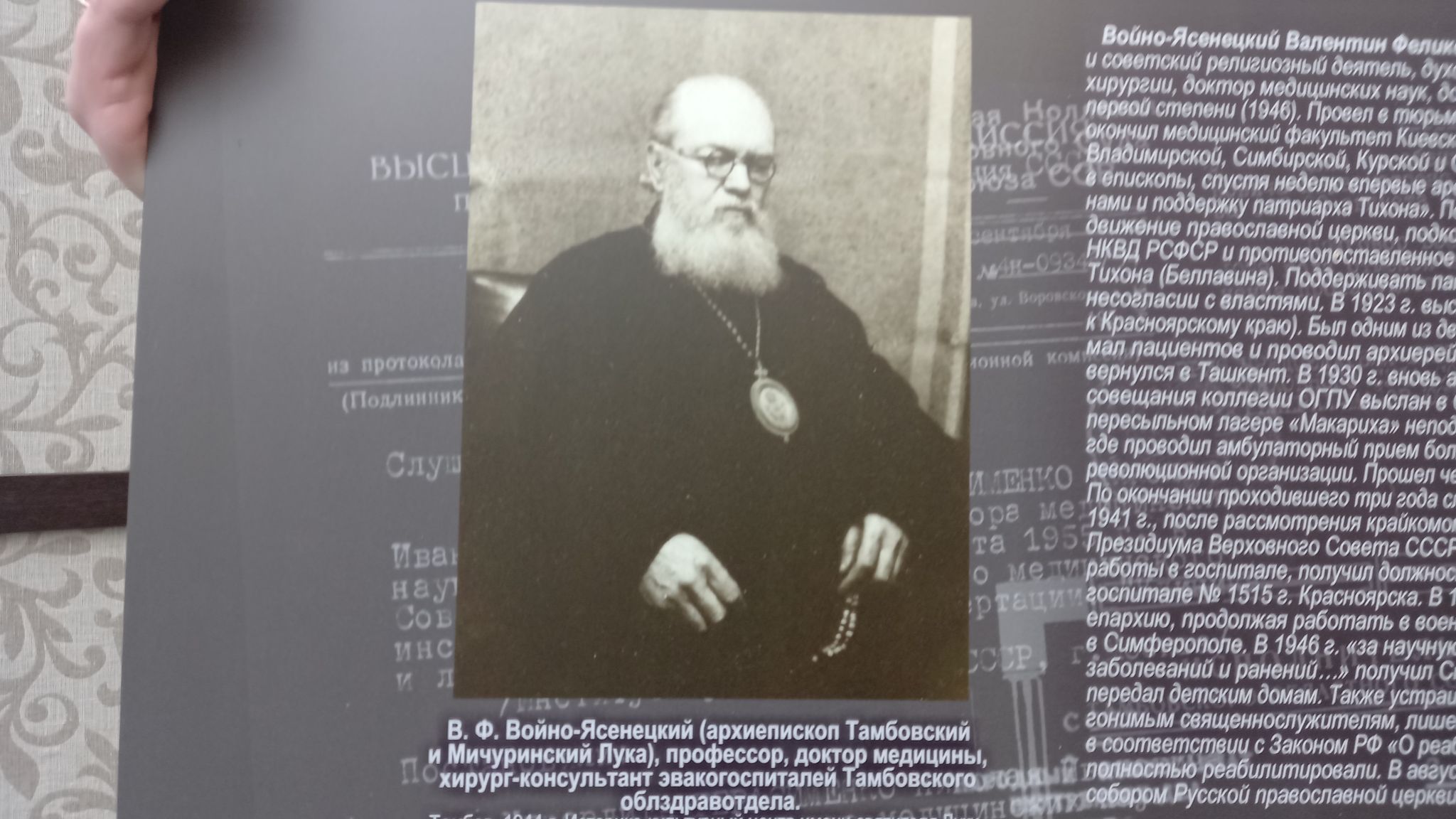 Таких докторов и фельдшеров были тысячи – не только не потерявших человеческий облик в нечеловеческих условиях, но и спасавших многие жизни. Среди них еще один герой выставки – святитель Лука, архиепископ, в миру Валентин Войно-Ясенецкий, хирург, врач-бессребреник и пастырь. Даже в ссылке он не прекращал делать сложнейшие операции и проповедовать. На требования ГПУ перестать давать благословение своим больным перед операцией он отвечал отказом.