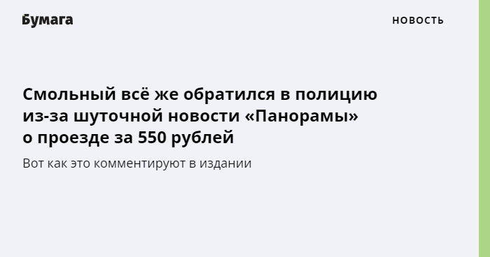 Смольный обратился в полицию из-за шуточной новости «Панорамы» о том, что проезд в петербургском метро во время локдауна будет стоить 550 рублей. Об этом пишет ТАСС.