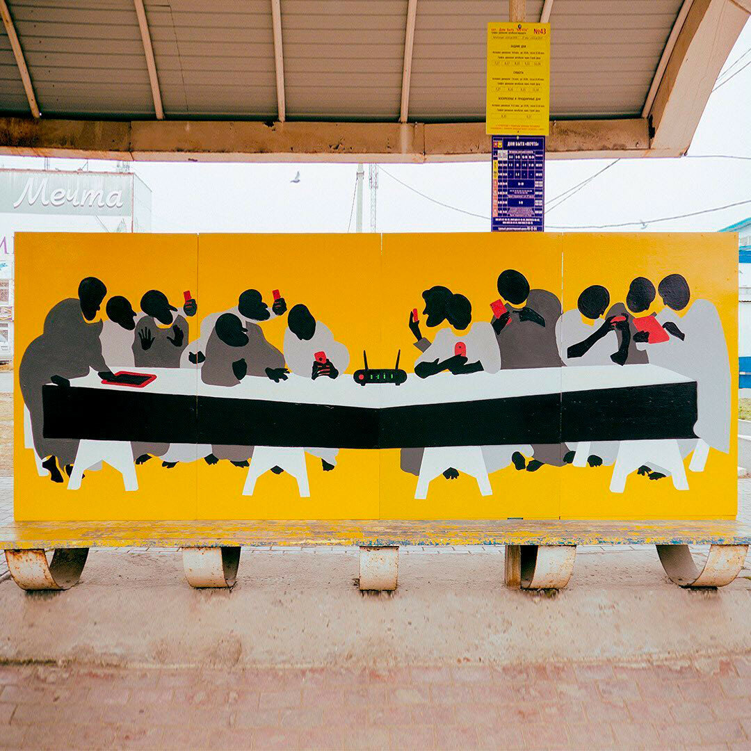 Когда-то у меня была личная работа с отсылкой на "Тайную вечерю". Она была на автобусной остановке.