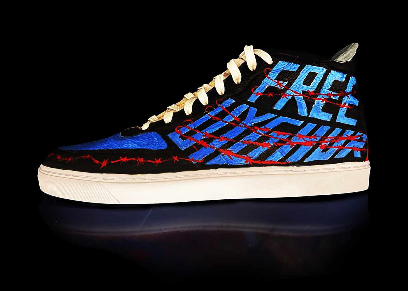 Наконец, еще через пару дней Кантер поставил перед собой осязаемую цель — добиться отмены Зимних Олимпийских игр в Пекине в 2022 году. Это он тоже написал на кроссовках («Нет прав, нет игр») и добавил туда же варианты флагов Тибета, Тайваня, Гонконга, Восточного Туркестана и Внутренней Монголии.