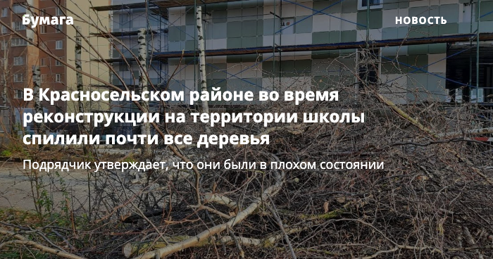 В Красносельском районе во время реконструкции школы спилили почти все деревья
