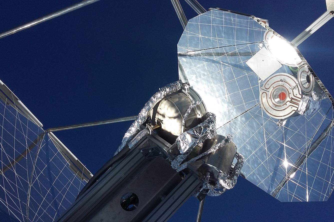 Установка представляет собой нечто вроде спутниковой тарелки с «довеском» из пары закрепленных на ней таблеток-реакторов. «Тарелочная» часть является параболическим отражателем и отвечает за сбор и концентрацию солнечной энергии на одной из двух реакторных камер. В самих реакторах происходит преобразование собранного из воздуха CO₂ в так называемый синтез-газ — предшественник зеленого топлива.