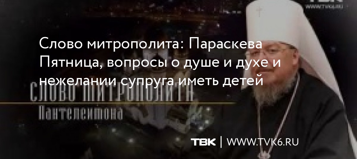 Слово митрополита: Параскева Пятница, вопросы о душе и духе и нежелании супруга иметь детей