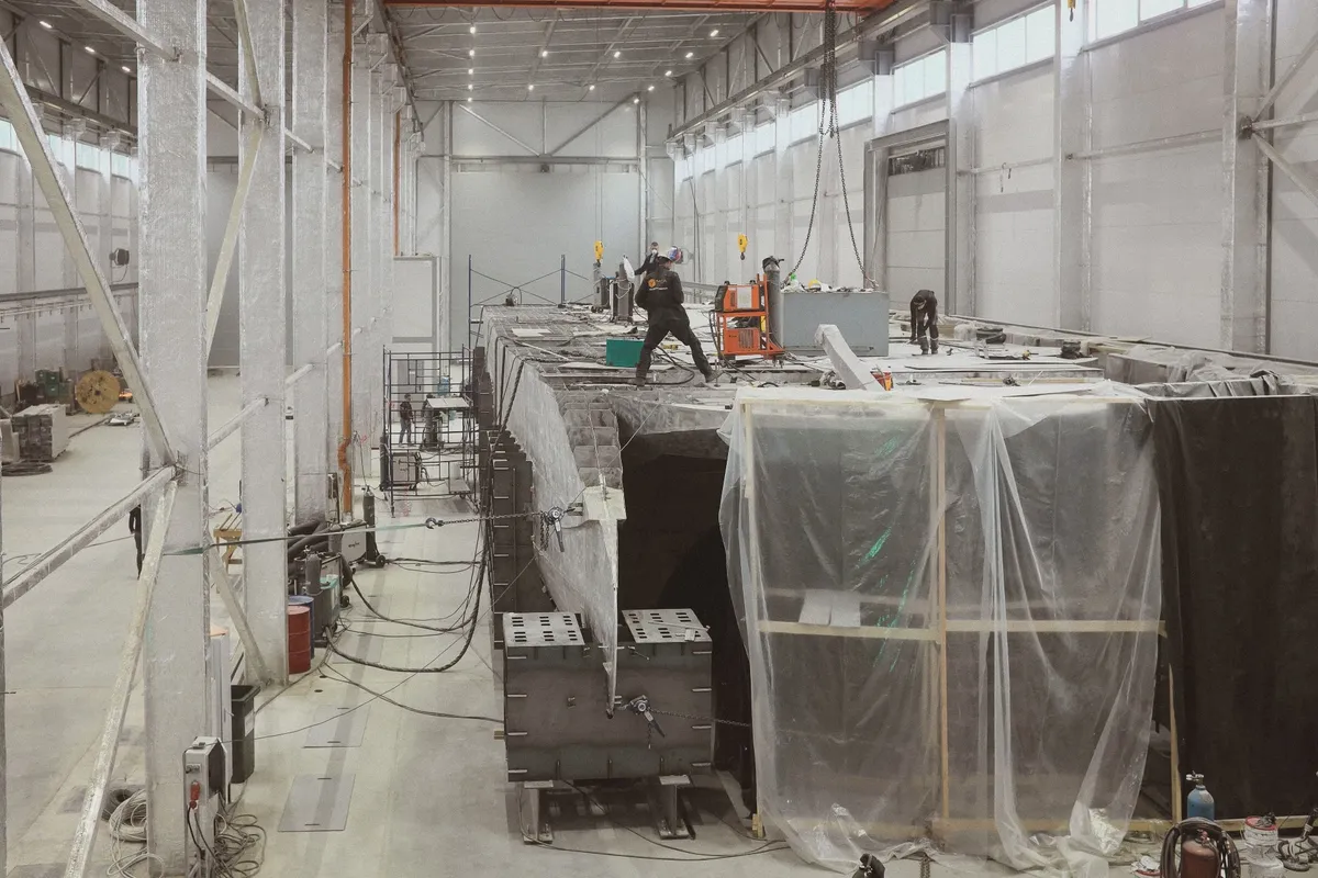 Формальный повод для этих заметок — научно-технический прорыв. Прямо сейчас на окраине Петербурга строится совершенно новый, невиданный в мире речной флот. За пару ближайших лет компании «Морсвязьавтоматика» и «Эмпериум» собираются спустить на воду два десятка электрических пассажирских судов, работающих только на энергии аккумуляторных батарей. Разработка и производство практически всех частей нового вида транспорта — отечественные. Идеи в этот проект вложены дерзкие — вплоть до того, чтобы делать корпуса судов на огромном 3D-принтере собственной конструкции.