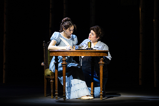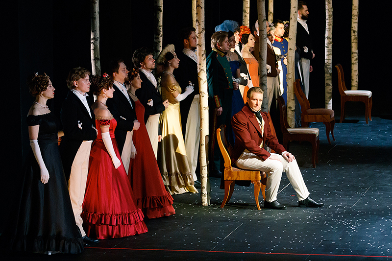 Это их первый совместный спектакль для репертуарного оперного театра. И это — спектакль-заявление, спектакль-манифест. Без громких слов и эффектных жестов, без «месседжа» и «деконструирования». Опера Чайковского — одна из главных русских культурных святынь, и любую сколь-нибудь радикальную режиссерскую интервенцию публика воспринимает как ее поругание. В буклете спектакля, составленном помощником художественного руководителя балета Богданом Корольком и начальником редакционно-издательского отдела театра Александром Рябиным, на полях либретто красным цветом отмечены главы и строфы пушкинского романа, параллельные места из русской Книги книг, объекта поклонения или святотатства.