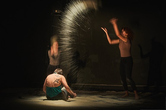 © Предоставлено пресс-службой фестиваля «Хаос» Сцена из спектакля «Место» Хореография «Места» сочинена Анной Хириной вместе с ее ученицами по Новосибирскому колледжу культуры и представляет собой свободный в лексике посттанец, обрамленный спецэффектом с сыплющимся рисом и размышляющий об этимологии слова и понятия «место» в разных ракурсах и с разных оптик. На выходе получился 45-минутный чувственный и интеллектуальный опыт, сделанный рукой перфекционистки, живущей в контексте актуальных танцпрактик.