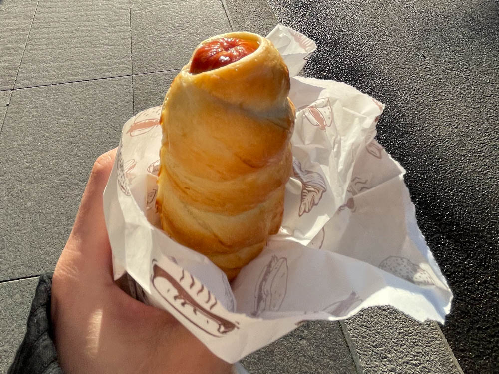 Это заведение для меня открыл сооснователь «Футуры» Илья Литвяк. Вот здесь можно почитать, что в меню «Колобка» предпочитает Илья, а мое комбо — зайти за сосиской в тесте сразу после выставки в галерее современного искусства Myth, которая находится через дорогу. Большая удача (и она мне часто улыбается) попасть на горячую выпечку — это спасает даже самый плохой день. Сосиску, кстати, можно взять с собой на прогулку по набережной.