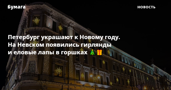 Улицы Петербурга начали украшать к Новому году. Об этом сообщает корреспондентка «Бумаги», а также очевидцы в социальных сетях.