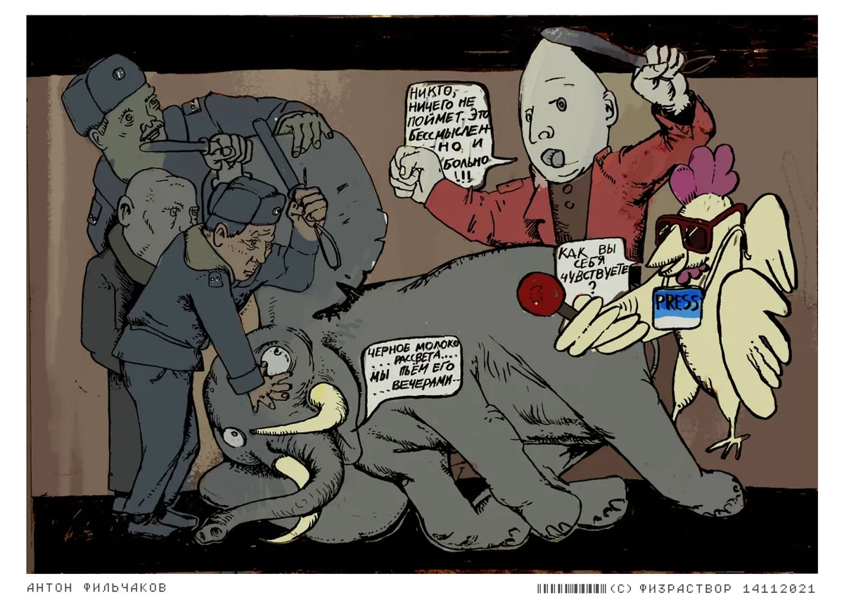 Силовики пытают слона, принуждая его к даче показаний о действиях животного и растительного мира, направленных на подрыв интересов России.