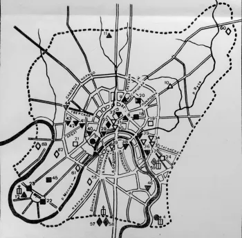 — Вот карта середины XX века с указанием кладов, найденных в Москве (рис. 8). Здесь их сравнительно немного. Сейчас отмечено кладов гораздо больше, несопоставимо.