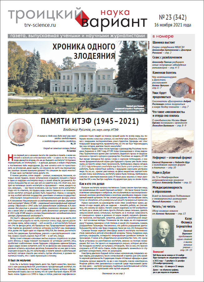 Весь номер газеты «Троицкий вариант — Наука» № 342 от 16 ноября 2021 года в PDF