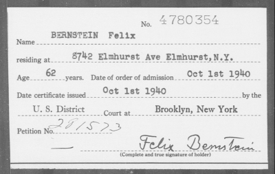 Неудачи в поисках работы преследовали Феликса Бернштейна все годы его эмиграции. Всего через год после начала его последнего пребывания в США в бумагах Рокфеллеровского фонда появляется запись от 21 мая 1934 года, дающая убийственную характеристику еще недавно процветающего ученого и научного организатора: «Бернштейн — определенный неудачник среди ученых-беженцев, которым помогал фонд» 10. Не помогло и получение американского гражданства в один день с Альбертом Эйнштейном — 1 октября 1940 года.
