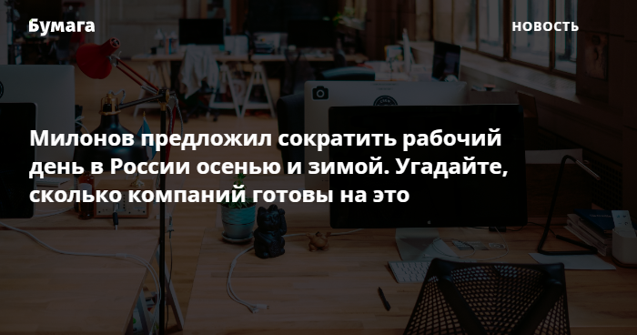 Депутат Госдумы Виталий Милонов предложил на час сократить рабочий день осенью и зимой. Согласно опросу сервиса Superjob, каждый второй россиянин поддерживает идею. Попробуйте угадать, что думают компании.