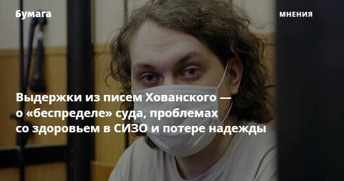 В течение своего заключения Хованский поддерживает связь с близкими, друзьями и сочувствующими с помощью писем. Он рассказывает о «беспределе» со стороны суда, обострившихся в СИЗО проблемах со здоровьем, утрате надежды на справедливость и равноценности своего наказания смертному приговору. «Бумага» публикует выдержки из писем Хованского.