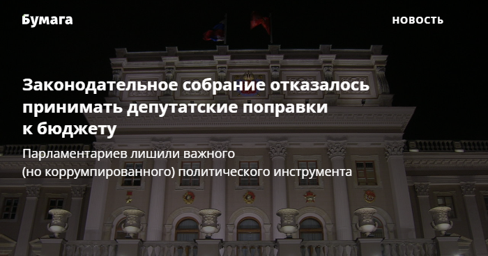 Законодательное собрание отказалось принимать депутатские поправки к бюджету. Парламентариев лишили важного (но коррумпированного) политического инструмента