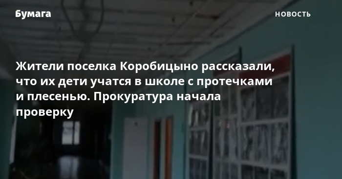 Жители Коробицына рассказали, что их дети учатся в школе с протечками и плесенью. Прокуратура начала проверку
