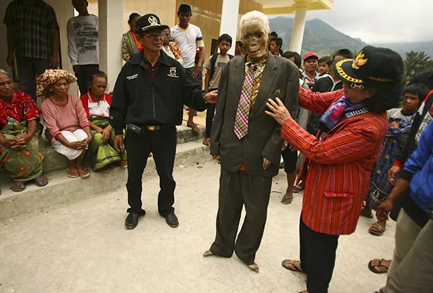 Но так бывает не во всех культурах — например, в Индонезии и на Мадагаскаре мертвецы активно участвуют в жизни живых. Раз в три года — во время праздника Манене — представители народа тораджи извлекают тела умерших родственников из могил и склепов, нарядно одевают, фотографируются с ними.