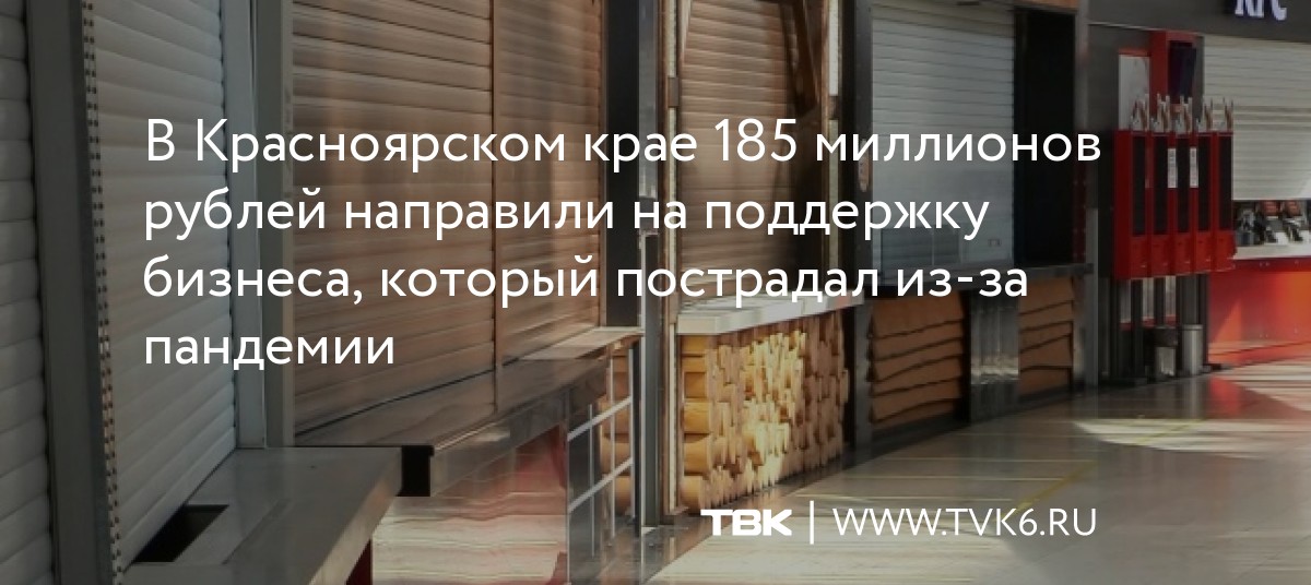 В Красноярском крае 185 миллионов рублей направили на поддержку бизнеса, который пострадал из-за пандемии