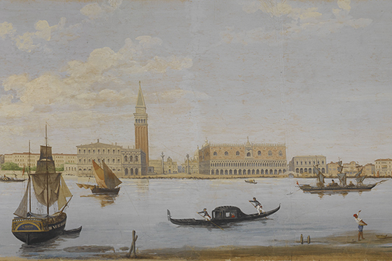 Произведения из собрания Музея архитектуры добавили в экспозицию тему венецианской ведуты XVIII века, не только сохранившей на холсте и бумаге изменившиеся или оставшиеся неизменными виды города, но и зафиксировавшей традиции венецианской видовой живописи Антонио Каналетто, Микеле Мариески и других венецианских художников.