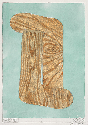 © Предоставлено МАММ Никита Алексеев. Из серии «Socko Socks» / «Носки Socko Socks». Деревянные. 2019. Бумага, акварель, чернила Поток сознания