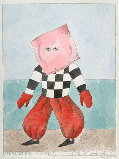 © Предоставлено МАММ Никита Алексеев. Из серии «Remarkable people I met at Shore» / «Замечательные люди, которых я встретил на пляже». Stefano Della Bonta, Conceptual Artist / Стефано Делла Бонта, художник-концептуалист. 2020. Бумага, акварель, чернила Вещи без начала и конца