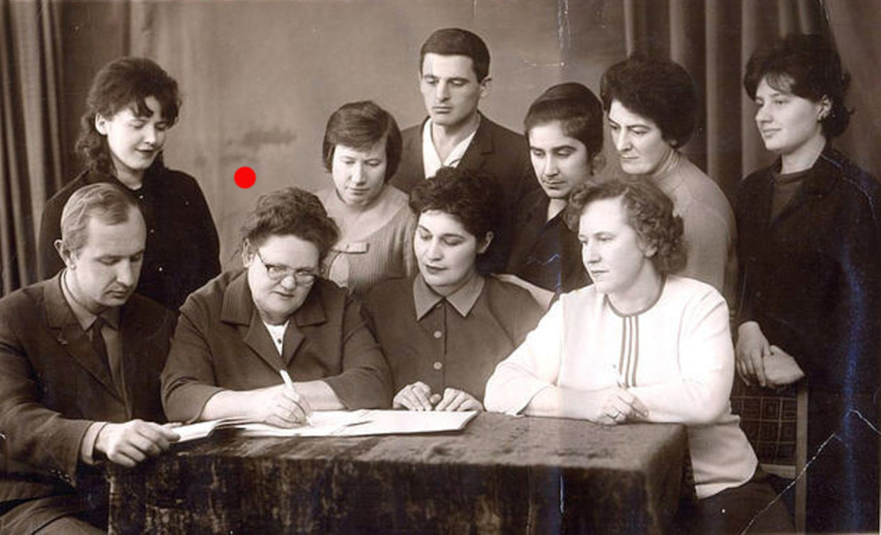 Архивное фото. Преподаватели Чечено-Ингушского государственного университета, 1960-е годы. На таких фото я ищу свою бабушку (отмечена красной точкой). Ее семейный архив остался в Грозном, ныне утерянФото: Ника Оксенчук
