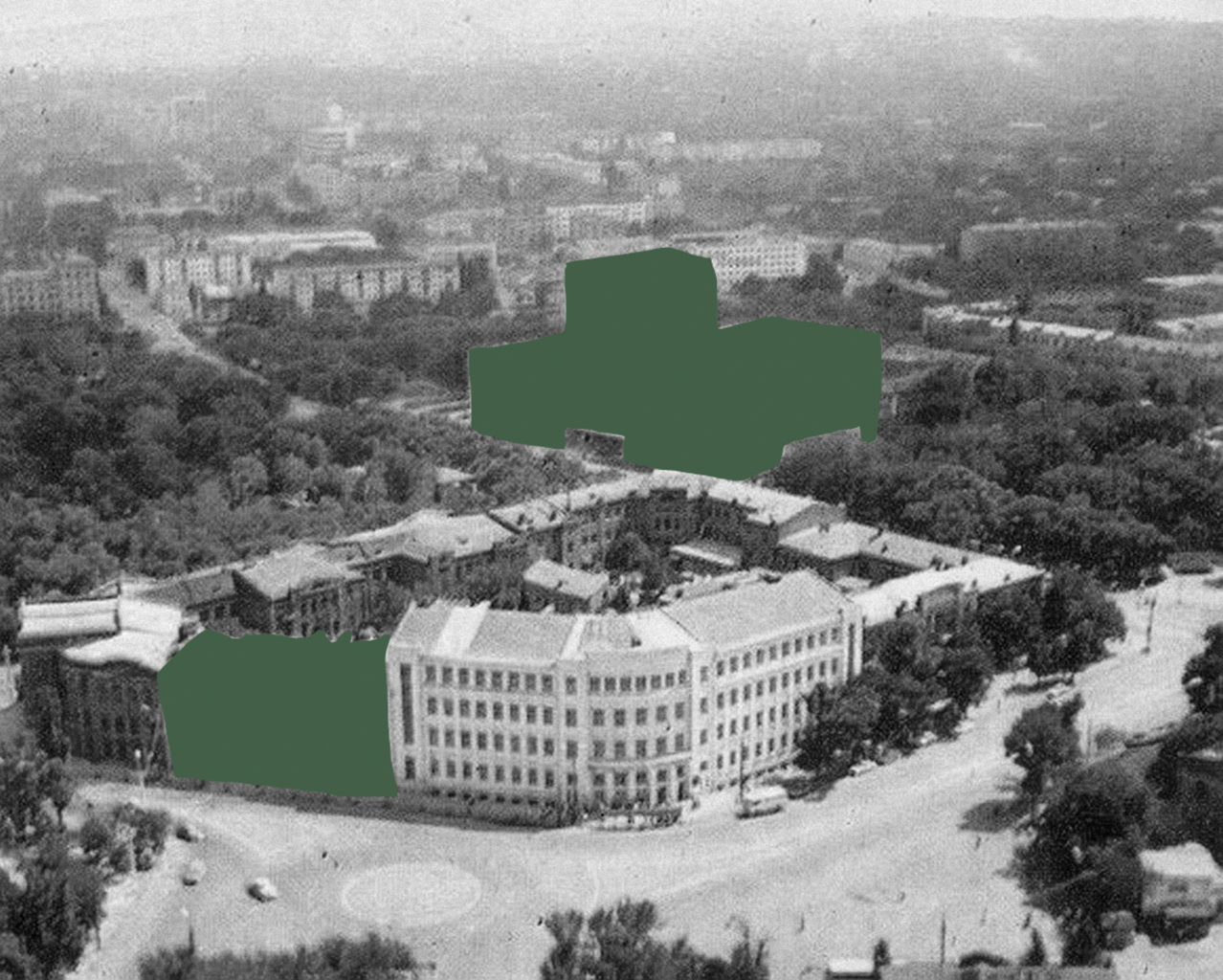 Коллаж на основе архивных фото города Грозного. Грозненский государственный институт нефтехимии, здание разрушеноФото: Ника Оксенчук До последнего она переписывалась со своей подругой и коллегой, уехавшей из Грозного в Минеральные Воды. Многих коллег бабушка так и не нашла. Когда ее не стало, я захотела увидеть Грозный таким, каким она запомнила этот город.