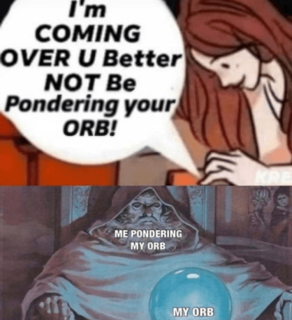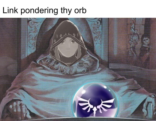 Судя по всему, пользователям понравилось минималистичное описание: автор твита подписал иллюстрацию с магом фразой «pondering my orb», что можно перевести как «задумчиво залипаю в сферу». Вряд ли такими словами описал бы свой замысел художник оригинала, но они точно передали состояние героя, с которым многие стали ассоциировать себя или других людей.
