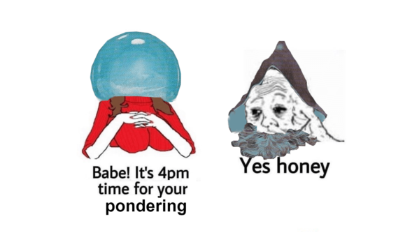 В середине ноября в англоязычной части твиттера распространился мем с изображением загадочного мудреца, задумчиво смотрящего в хрустальный шар. При этом у шаблона нет единого формата: одни заменяют шар на любые сферические предметы, другие помещают героя в мемы, а третьи делятся текстовыми шутками.