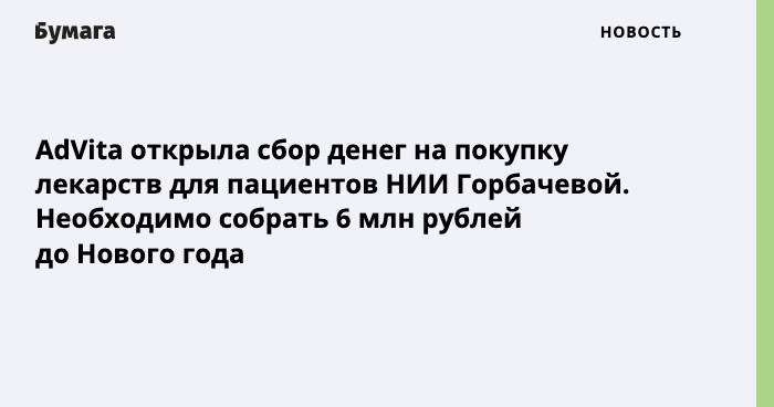 AdVita открыла сбор денег на покупку лекарств для пациентов НИИ Горбачевой
