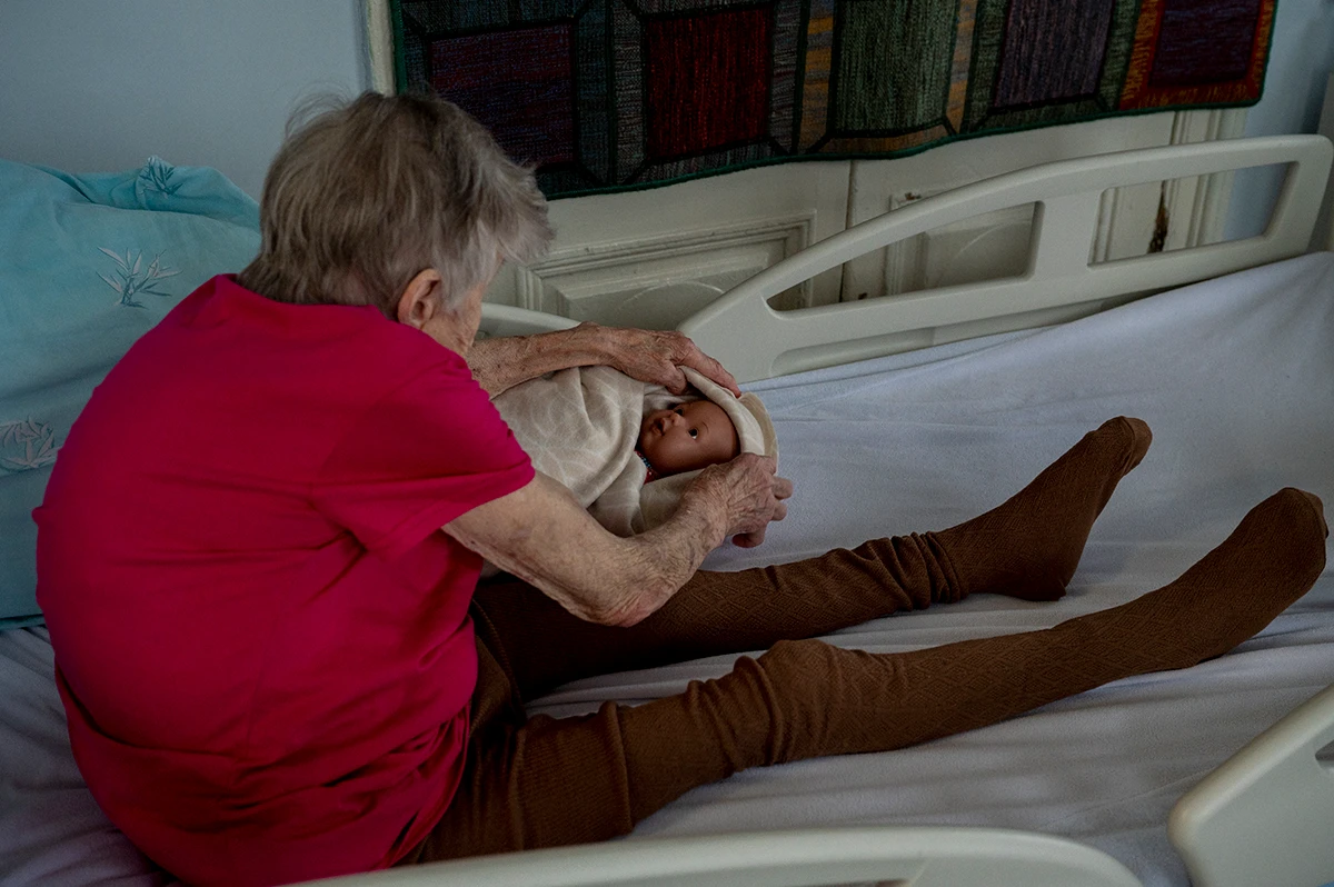 Аня пританцовывает на ходу. До санитарки она работала уборщицей — но «умолила» разрешить ей переучиться. «Я всегда бастую, когда меня заставляют мыть полы. Я больше хотела проводить время с пациентами, чем с этими полами».