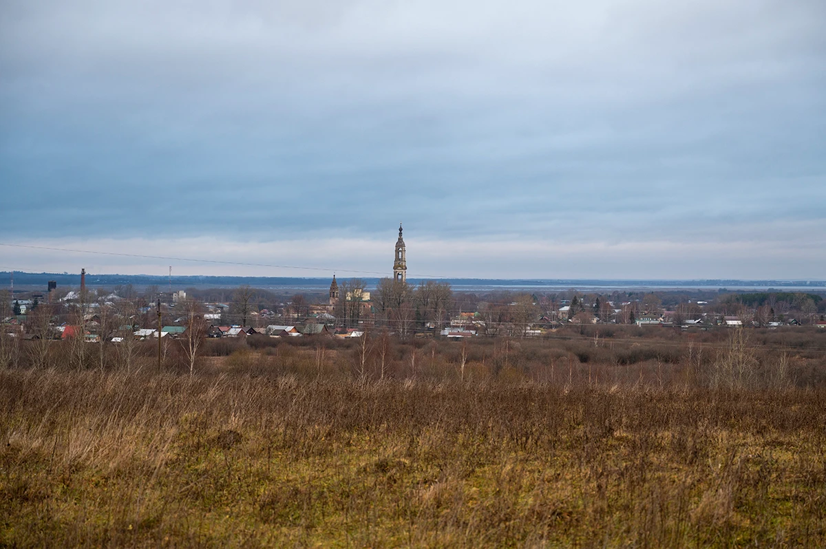 Над улицей, над Поречьем стоит каменная колокольня. С каждым шагом она делается больше, прозрачней, выше. Солнце падает вниз и проходит ее насквозь.