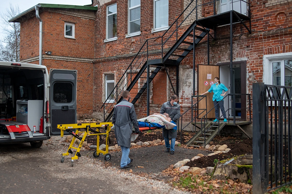 Пореченский хоспис — это старый купеческий дом. Красный кирпич, деревянные лестницы, лепнина и фрески. С 1867-го здесь «всегда была больница». Пациентов сейчас 16. Двое умерли на прошлой неделе, Молева и Титова — «вместе поступили, вместе ушли, и тихо ушли». 14 женщин, двое мужчин.