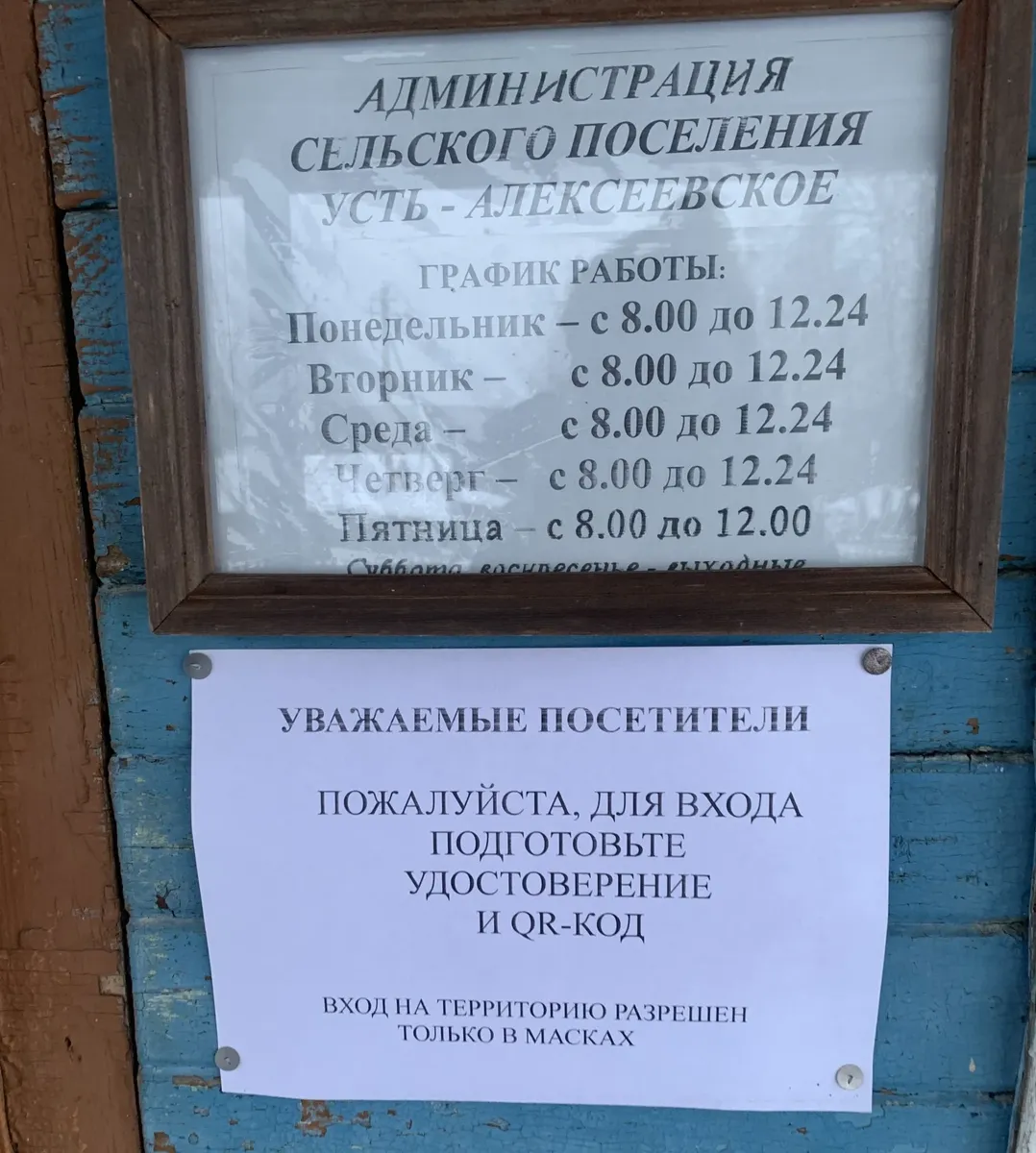 На дверях школы, она же библиотека, свежая наклейка «Стоп свалке в Горбачево». Появилась она накануне, когда в село приезжали чиновники запоздало объяснять жителям, как нужен региону полигон именно в их деревне. Рядом кнопками к косяку пришпилено не менее свежее объявление: «Для входа предъявите QR-код». Оно тоже появилось перед визитом государевых слуг и особенно возмутило местных. И дело не в антиваксерстве: они и рады бы получить сертификат, да только в селе не только нет интернета, чтоб скачать код из «Госуслуг», но и медпункт не работал с мая. Но власти невдомек: приехавшие заместители главы района долго удивлялись, что 3G тут не берет, и документы, которые требовали местные, «невозможно выкачать».
