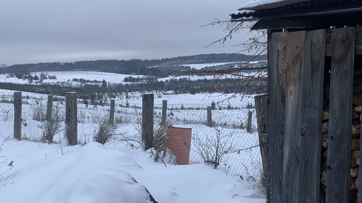 Зимой в Горбачево жизнь теплится в 3–4 избах. Народ приезжает летом — до Великого Устюга всего 50 км. Идем на окраину деревни. На пригорке напротив две залысины — раньше там сеяли горох. Там и будет полигон. По документам до ближайшего дома 1300 метров, все законно. В низинах под холмами текут ручьи, в этих местах пойма нескольких рек. Вокруг болота.