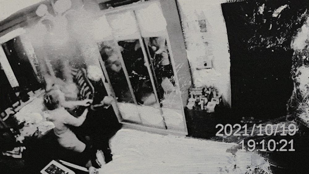Запись с домашней видеокамеры: в просторной комнате мужчина заламывает руку женщине, когда та пытается отнять у него свой телефон. Она кричит от боли, рядом мечется ее взрослая дочь, пытаясь помочь. Из коридора доносится старческий надтреснутый голос: «Тебя надо было давно бить! Ты бы тогда по полициям не ходила!»