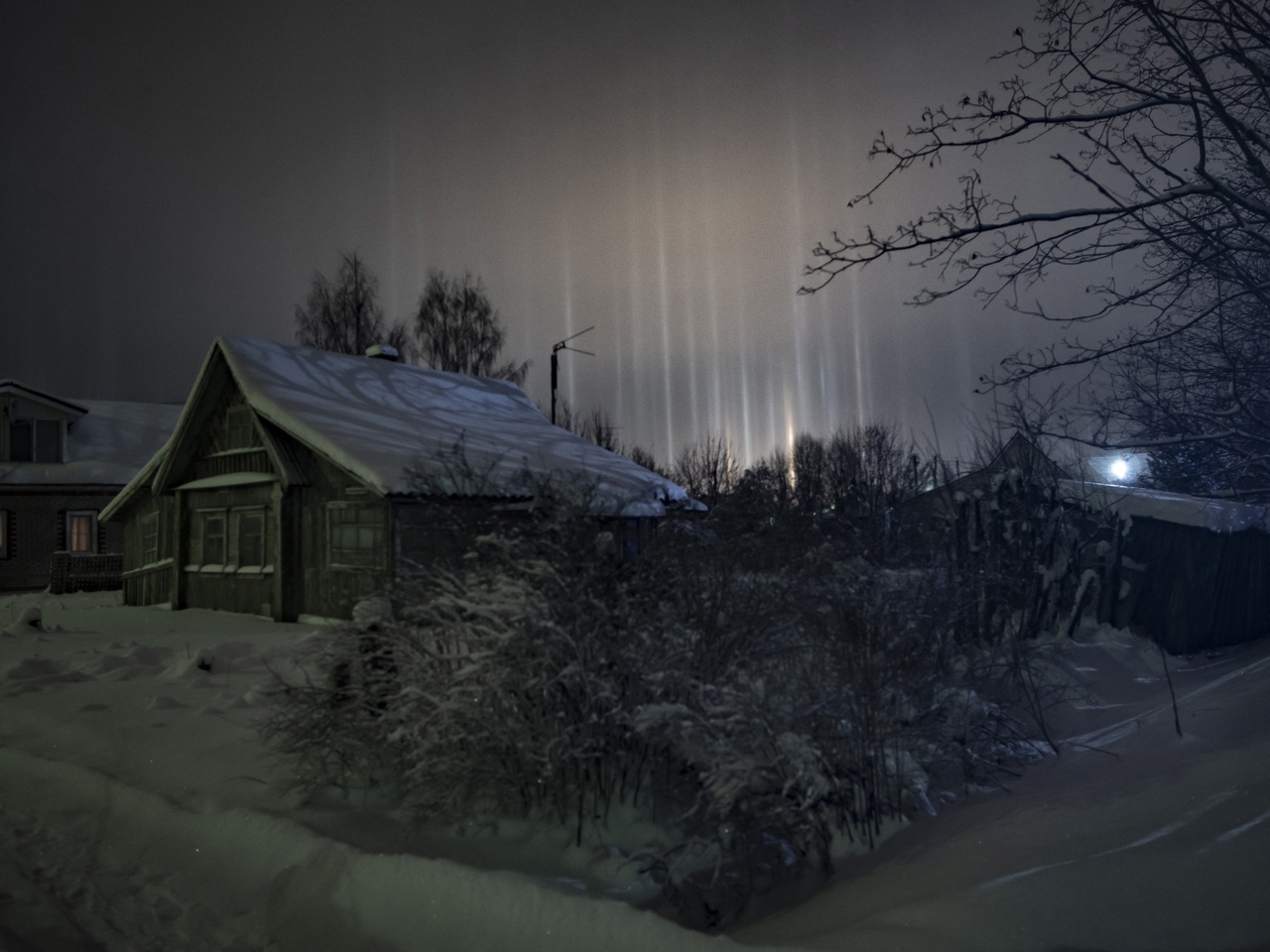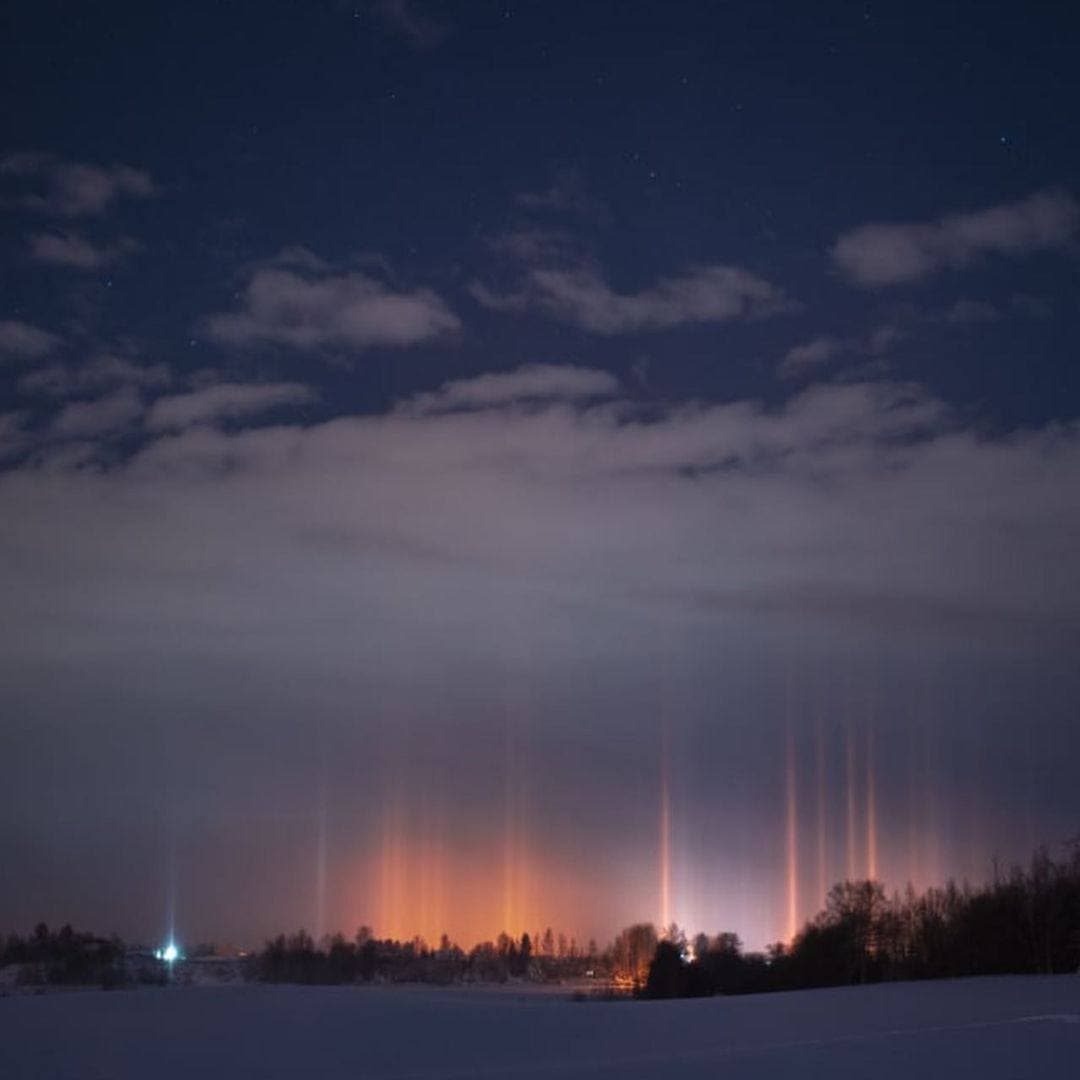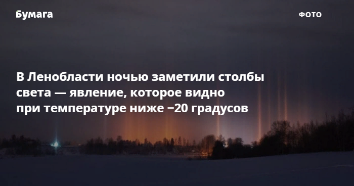 В Ленобласти ночью заметили столбы света — явление, которое видно при температуре ниже −20 градусов