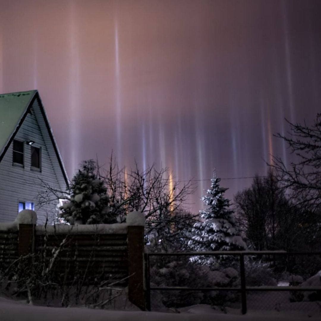 В Ленинградской области ночью заметили световые столбы — атмосферное явление, возникающее, как правило, при низких температурах.