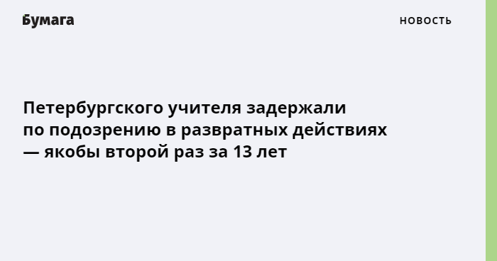 «Фонтанка» без указания источника утверждает, что в 2008 году учителя уже привлекали к уголовной ответственности за развратные действия, но он якобы получил 2 года условно. Однако в администрации Московского района «Бумаге» сообщили, что задержанный при трудоустройстве в 2018 году предоставил справку от ГУ МВД об отсутствии судимости.