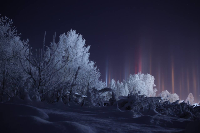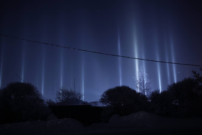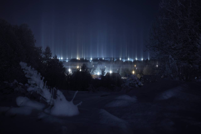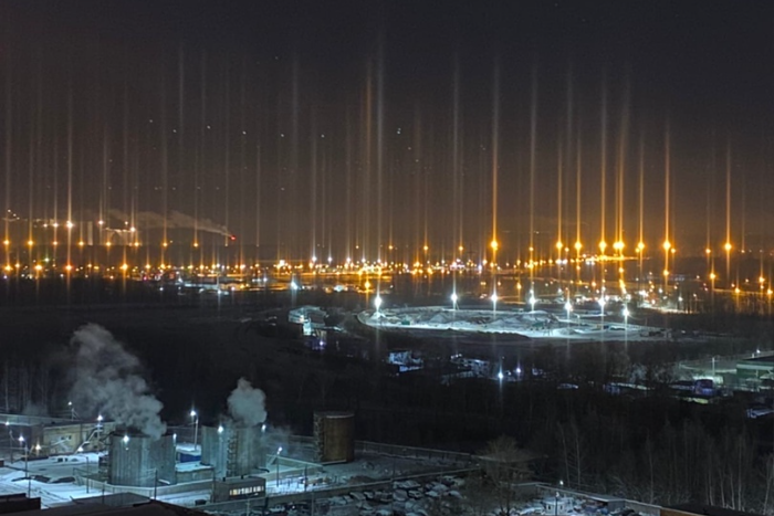 В ночь с 9 на 10 декабря в Петербурге и Ленобласти наблюдали световые столбы — оптическое явление, возникающее за счет отражения света от крошечных ледяных кристаллов, взвешенных в атмосфере. Очевидцы разместили фотографии в соцсетях.