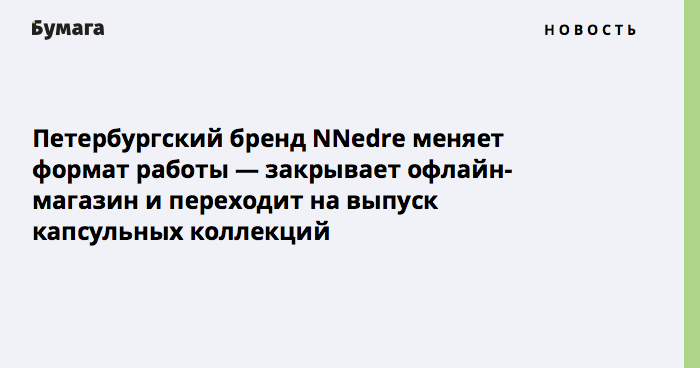 Петербургский бренд NNedre меняет формат работы — закрывает офлайн-магазин и переходит на выпуск капсульных коллекций