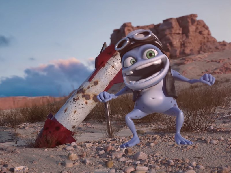 Лягушонок Crazy Frog, которого многие помнят еще по рингтонам в досмартфонные времена, выпустил новый трек, первый за 11 лет. В клипе лягушонок над пустыней встречается с роботами, а в завершении сюжета отправляется в космос на ракете-носителе Space Y. Уже на околоземной орбите он покидает космический корабль и начинает летать в невесомости.