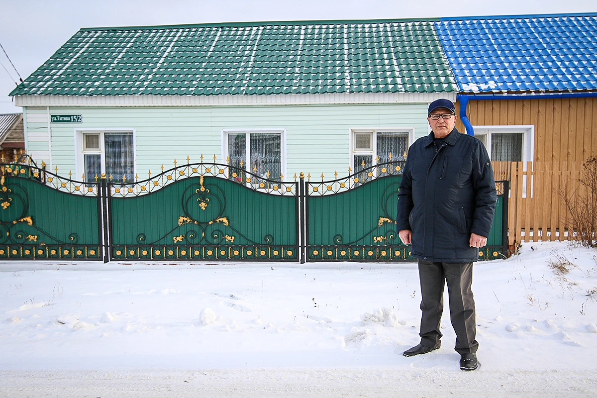 Глава аппарата Каримов, к моему удивлению, перезванивает и дает контакт «ветерана-активиста» Фаниля Ильясова. Тот представляется ветераном труда с 40-летним стажем работы на почте. О том, что Ильясов также является депутатом Сабинского района от «Единой России», и он, и Каримов почему-то умолчали. Ветеран явно не в восторге от задания администрации села — настолько, что даже не приглашает меня в дом, предлагая пообщаться прямо на дороге. «[Минниханов] как президент все время заботится о народе, везде благодаря президенту строятся школы и детские сады. Заслуга президента, что мы хорошо живем», — сухо говорит депутат Ильясов, стоя на ветру.