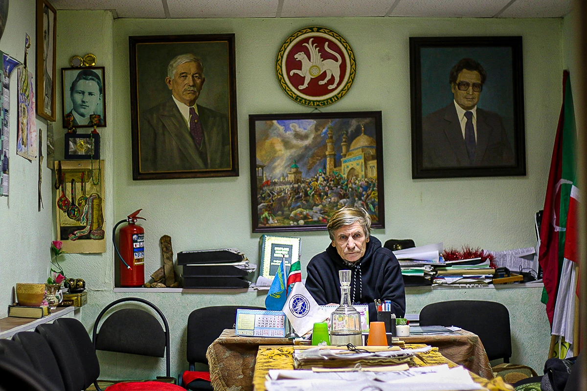 Председатель ВТОЦ Закиев, бывший авиационный инженер, рассказывает, что, «когда все разваливалось, он с коллегами на советских дрожжах поднял на крыло Ту-214». Мы сидим в офисе его организации — в узкой комнате с низким потолком на стене висят два портрета деятелей татарского национального движения: писателя Гаяза Исхаки и основателя ВТОЦ Марата Мулюкова. Давний противник ВТОЦ Беляев утверждает, что когда-то у организации был «гигантский дом» в Казани, а в других населенных пунктах ей отдавали помещения райкомов КПСС.
