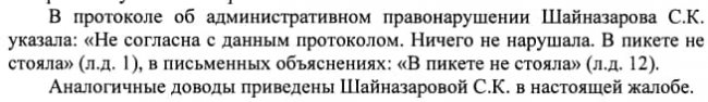 В кассациях Шайназарова представляла свои интересы сама. Также в защиту задержанной выступили сотрудники аппарата УПЧ. Их обращения приобщили к материалам дела.
