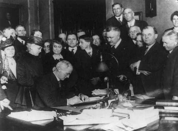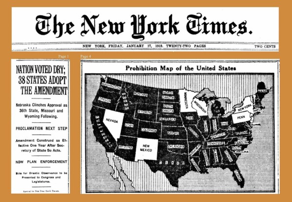 В декабре 1917 года Конгресс США принял 18-ю поправку к конституции. Проект запрещал свободные производство, продажу и транспортировку любых алкогольных напитков внутри страны. На утверждение поправки необходимым числом штатов (36 из 48) ушло чуть более года.
