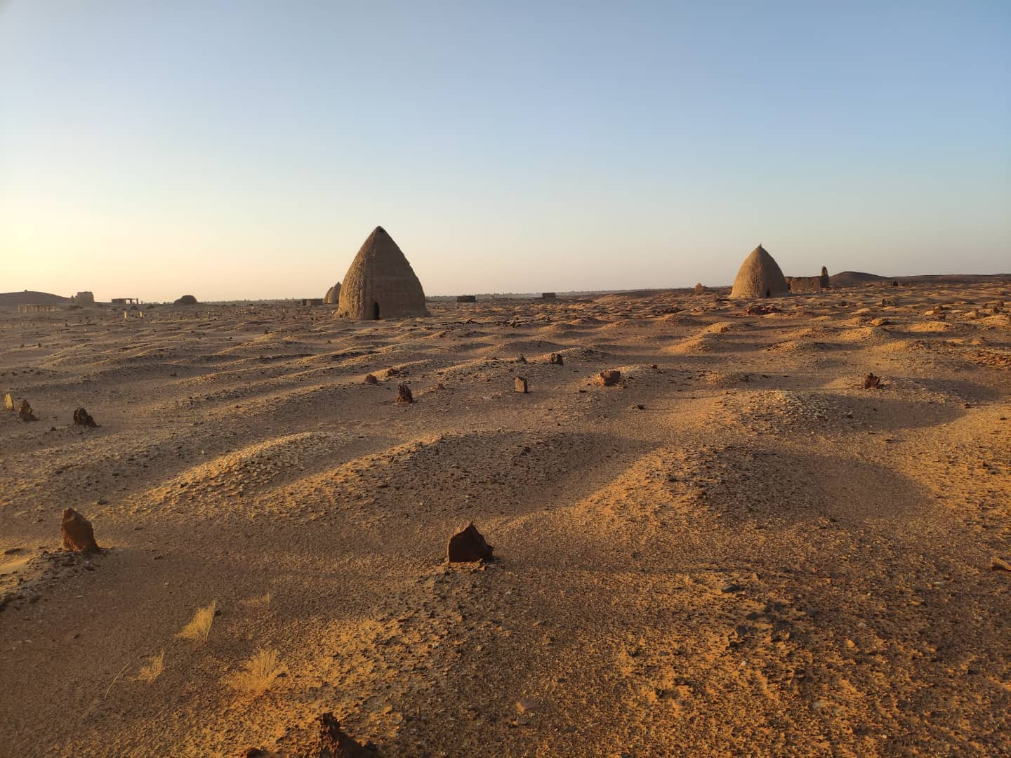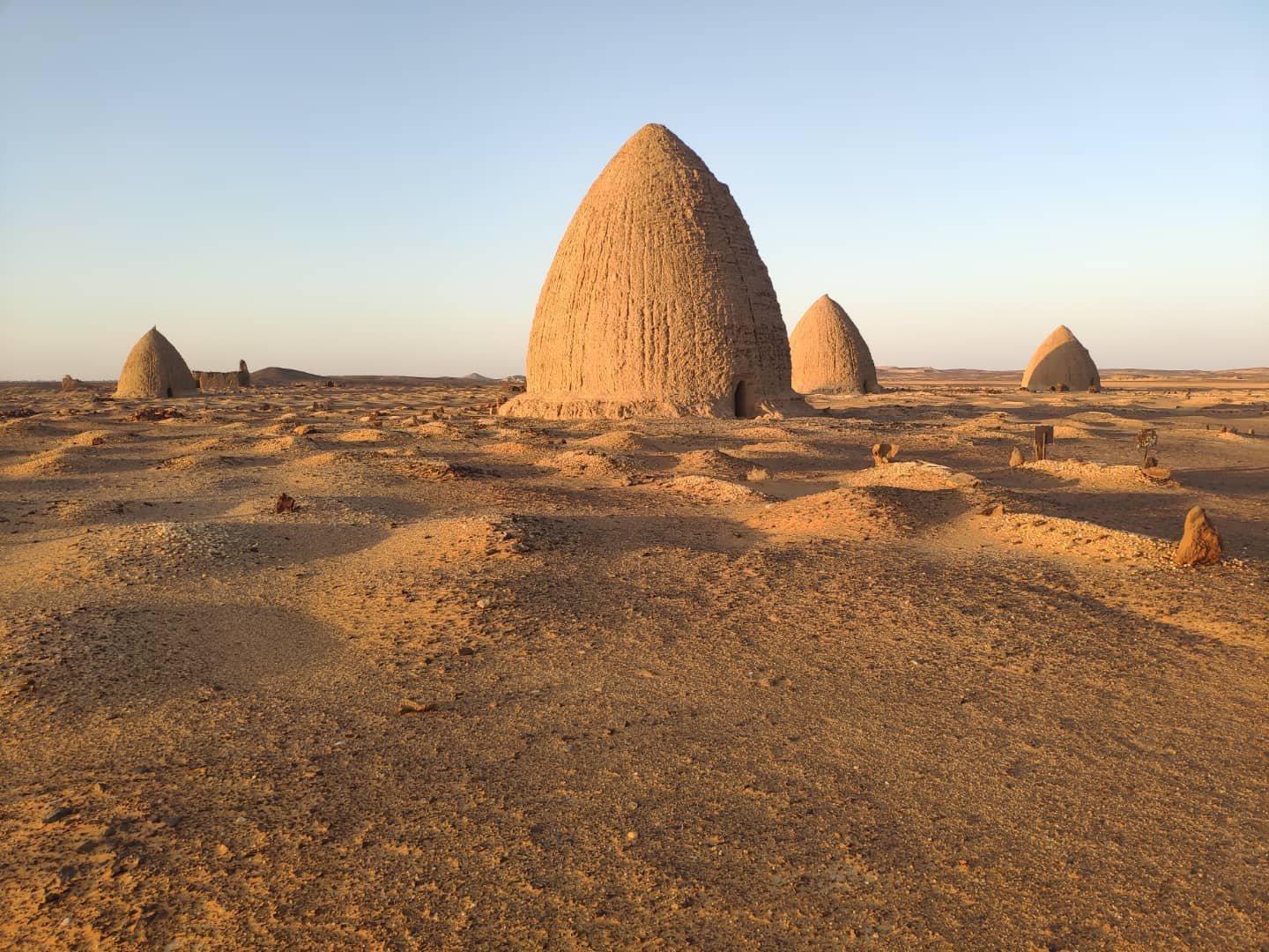 На окраине старой Донголы древнее, уже мусульманское кладбище с гробницами имамов (в Судане до сих пор крайне распространен суфизм), отдаленно отсылающих по форме к нубийским пирамидам. Место вполне необычное и вызывающее множество ассоциаций с фантастическими фильмами.