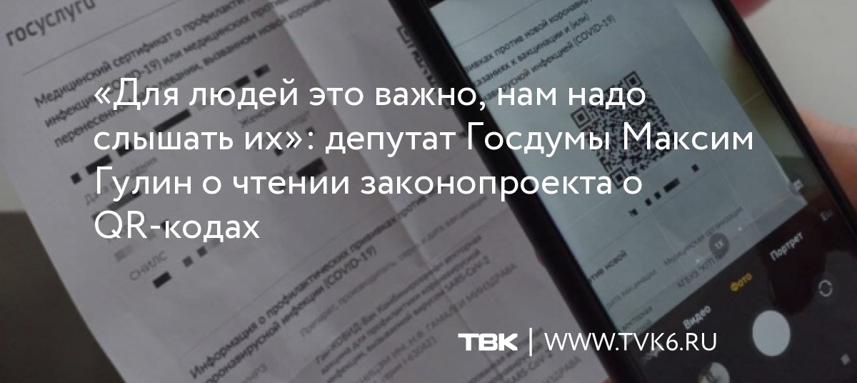 «Для людей это важно, нам надо слышать их»: депутат Госдумы Максим Гулин о чтении законопроекта о QR-кодах