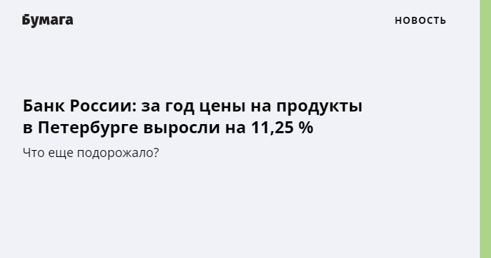 Цены на продукты в Петербурге выросли за год на 11,25 %, говорится в информационно-аналитическом комментарии Банка России об инфляции в городе в ноябре 2021 года. Регулятор связывает это с ростом издержек производителей продуктов.