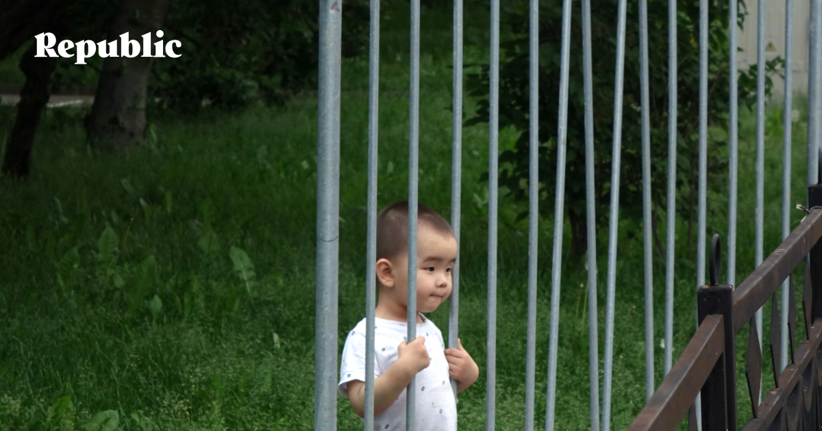 Ребенок из семьи трудовых мигрантов в московском сквере, июнь 2020 года